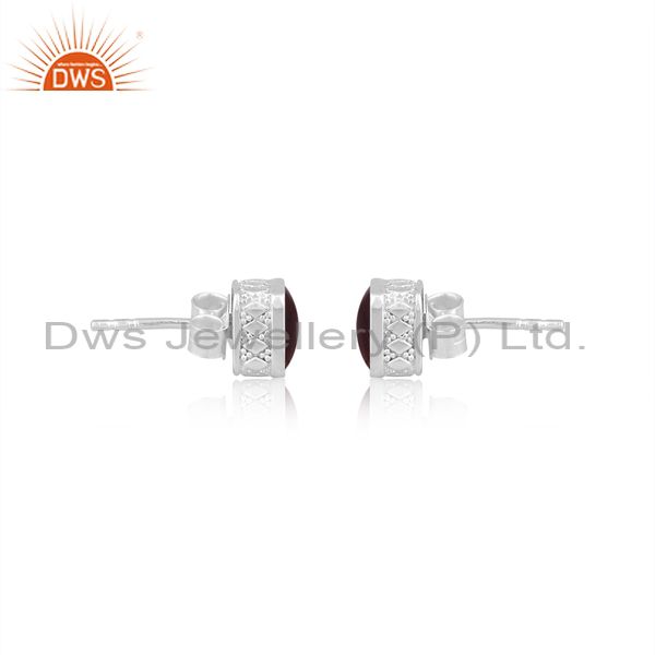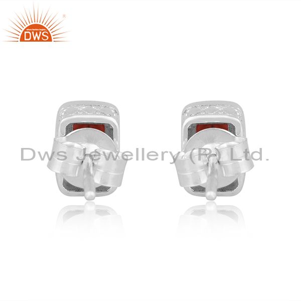 Garnet Set Fine 925 Silver Rectangular Statement Earrings