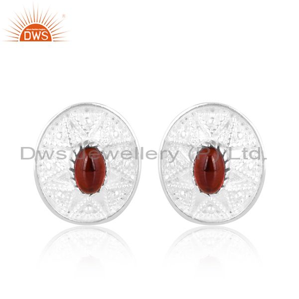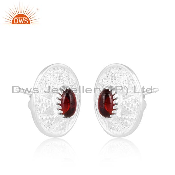 Garnet Set Fine 925 Sterling Silver Oval Statement Earrings