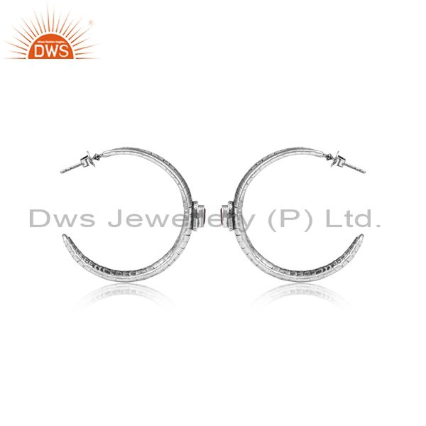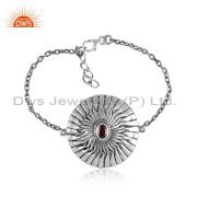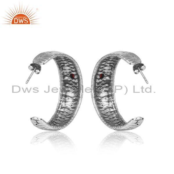 Garnet Set Handhammered Oxidized Silver Round Hoop Earrings