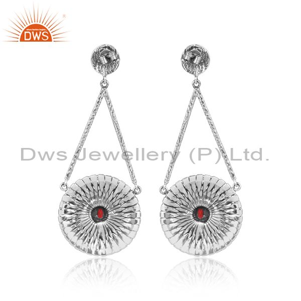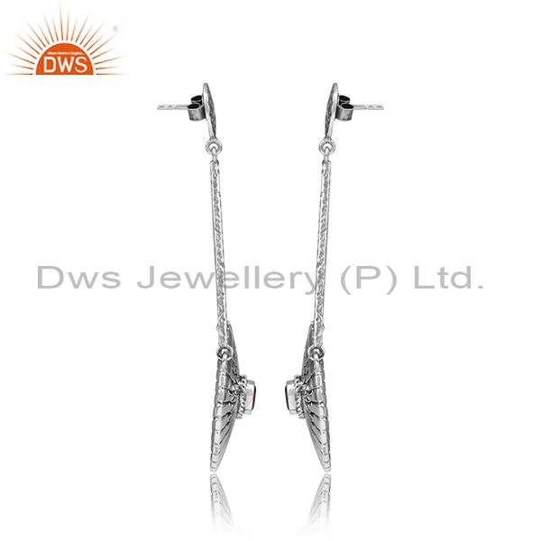 Garnet Set Oxidized Silver Classic Long Drop Boho Earrings
