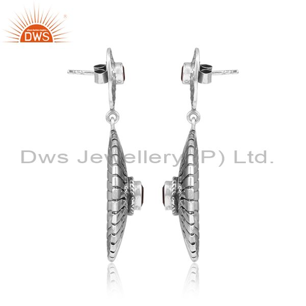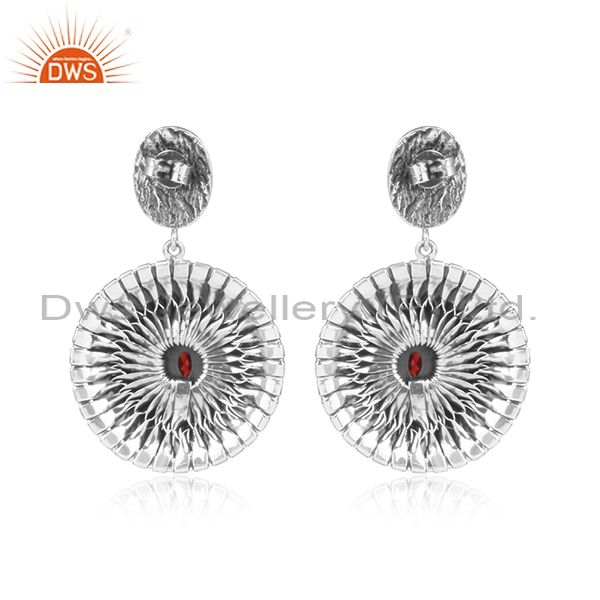 Garnet Set Oxidized Silver Handhammered Round Boho Earrings