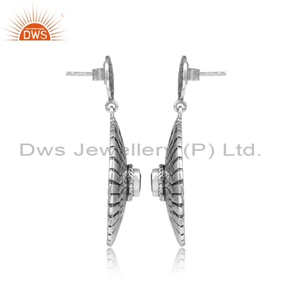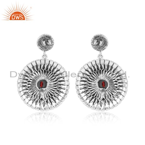 Garnet Set Oxidized Silver Handhammered Round Drop Earrings