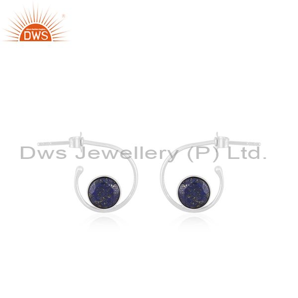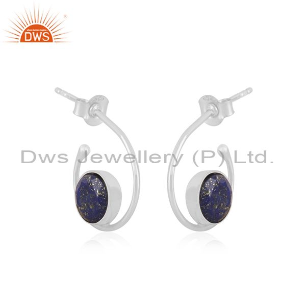 Genuine Lapis Lazuli Gemstone Fine Sterling 92.5 Mark Silver Girls Hoop Earring