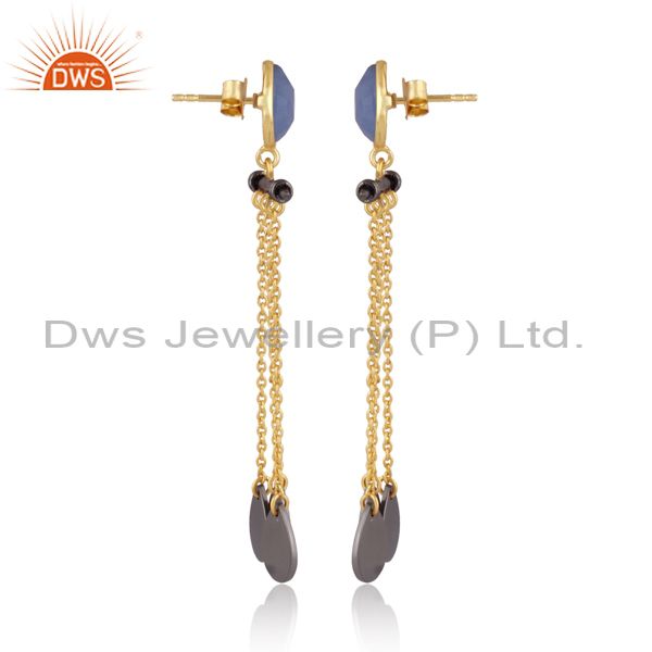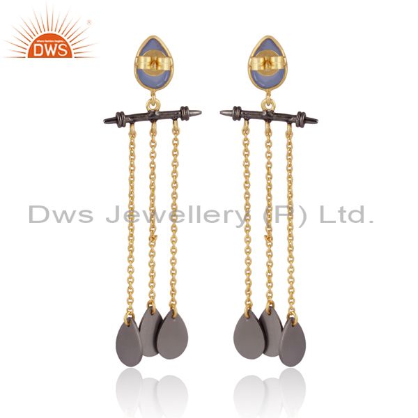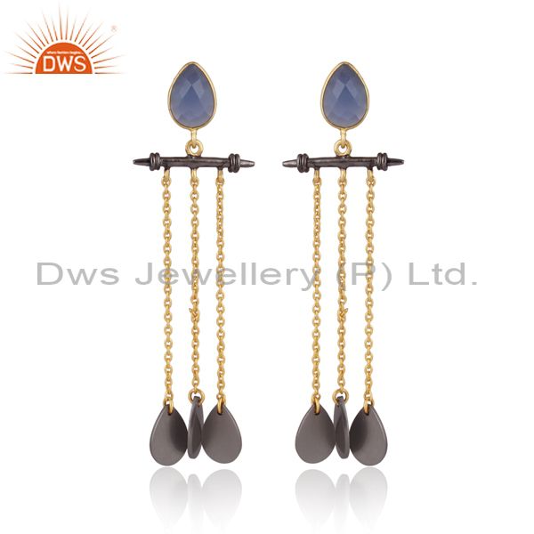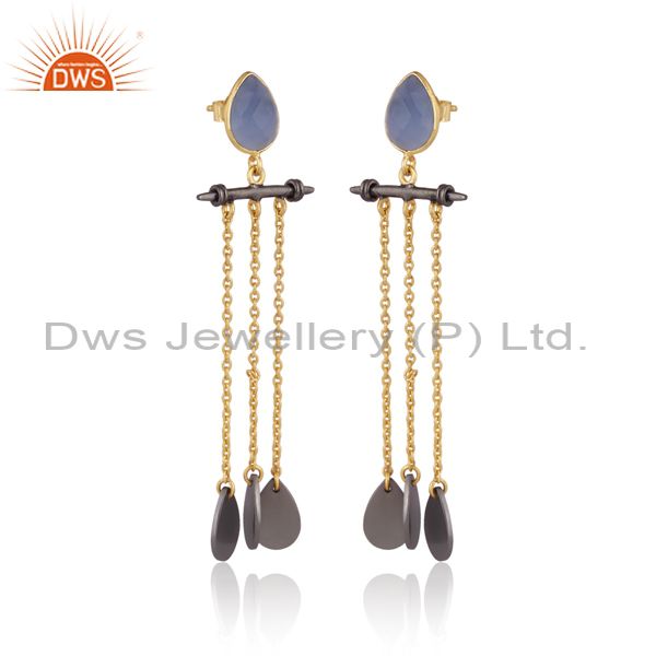 Glass Blue Chalcedony Gold, Black On Silver Long Earrings
