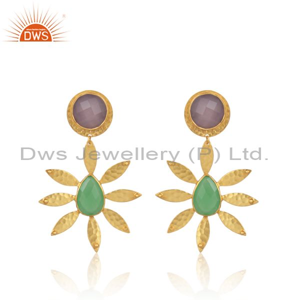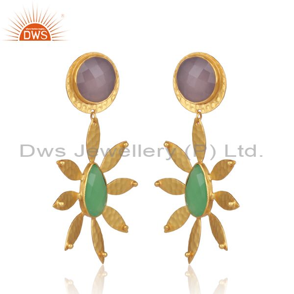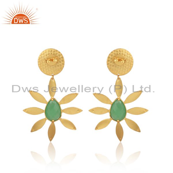 Glass Rose, Glass Prehnite Set Casual Floral Brass Earrings