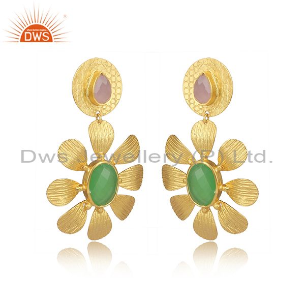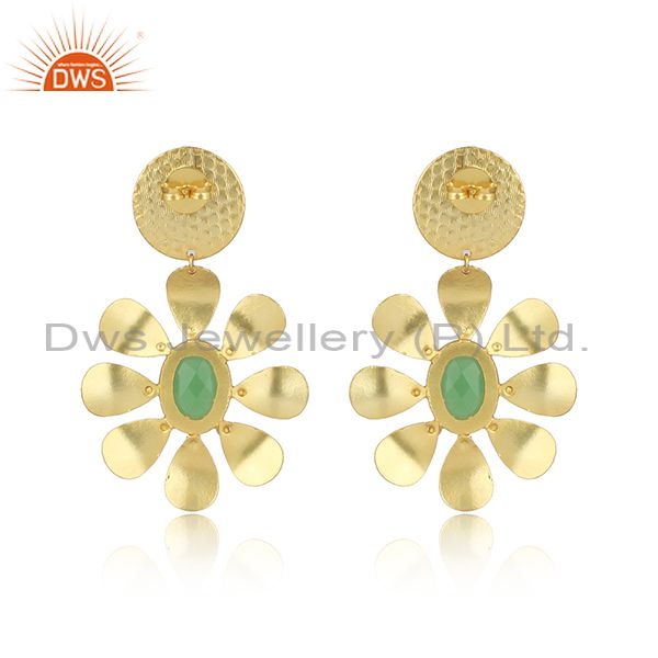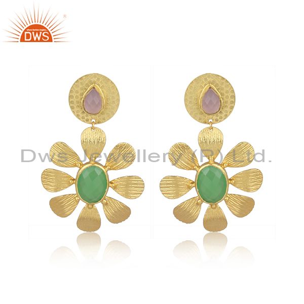 Glass Rose, Prehnite Set Brass Textured Floral Drop Earrings