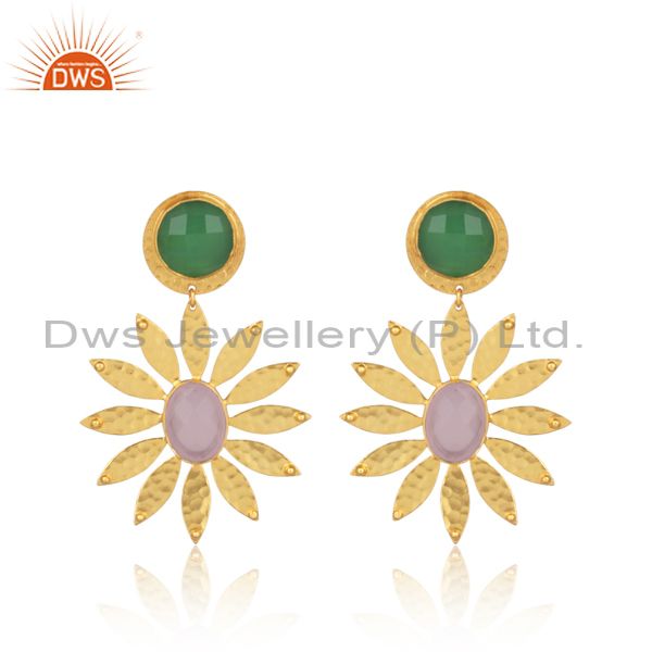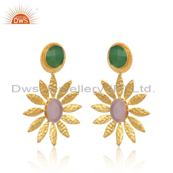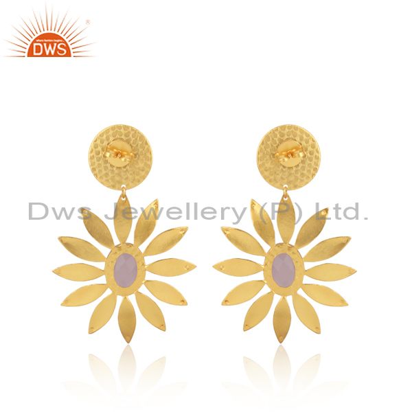 Glass Rose, Prehnite Set Gold On Brass Fashion Floral Earring