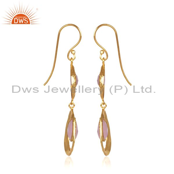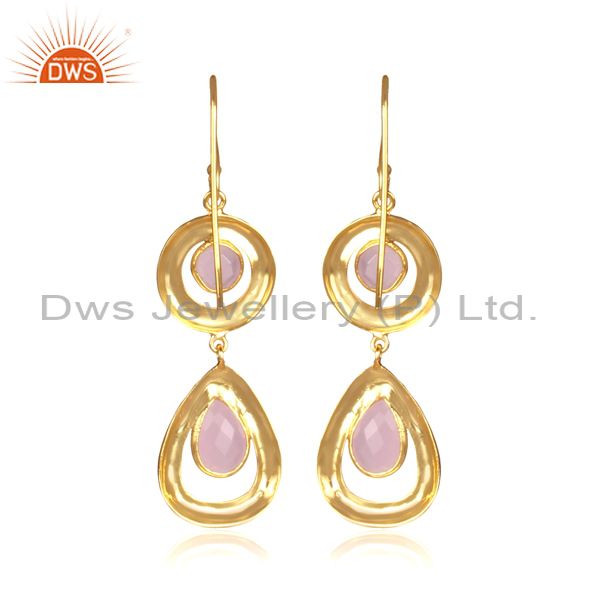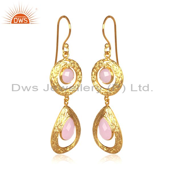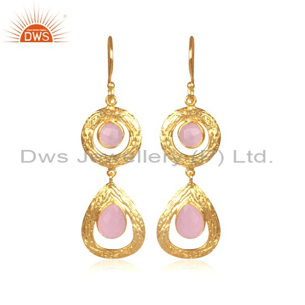 Glass Rose Round And Pear Shape Brass Gold Textured Earrings
