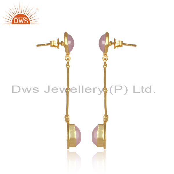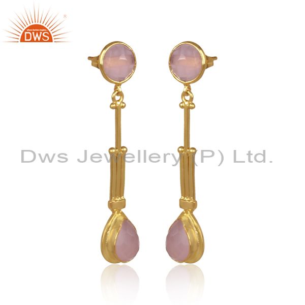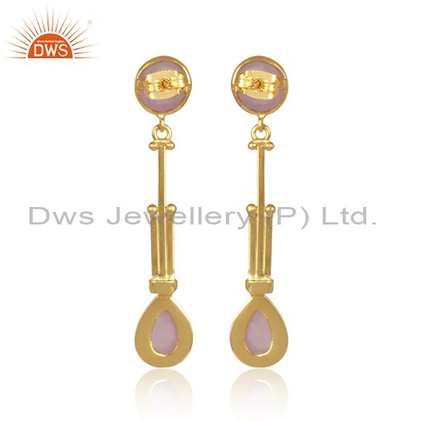 Glass Rose Set Brass Gold Handmade Long Drop Fancy Earrings
