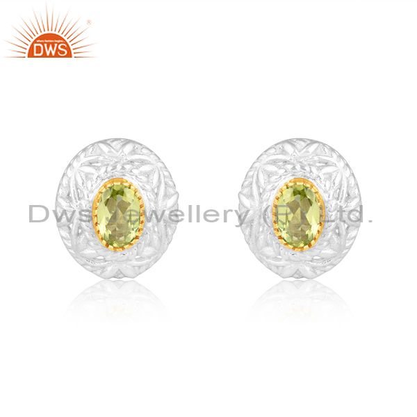 Gold On Fine Sterling Silver Oval Cut Peridot Set Earrings