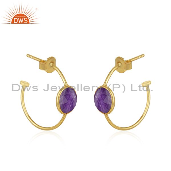 Gold Plated 925 Silver Aventurine Natural Gemstone Earrings Jewelry