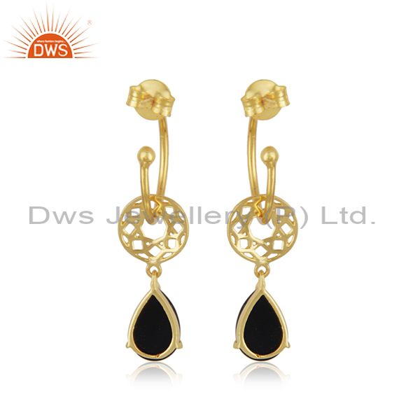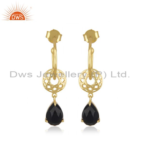 Gold Plated 925 Silver Black Onyx Gemstone Dangle Earring Manufacturer