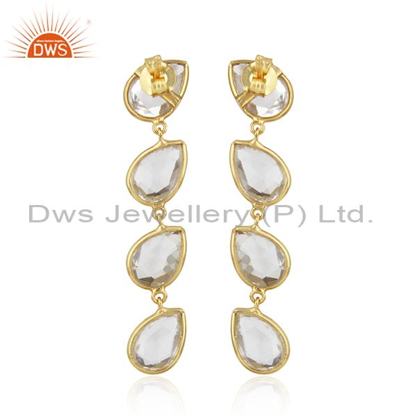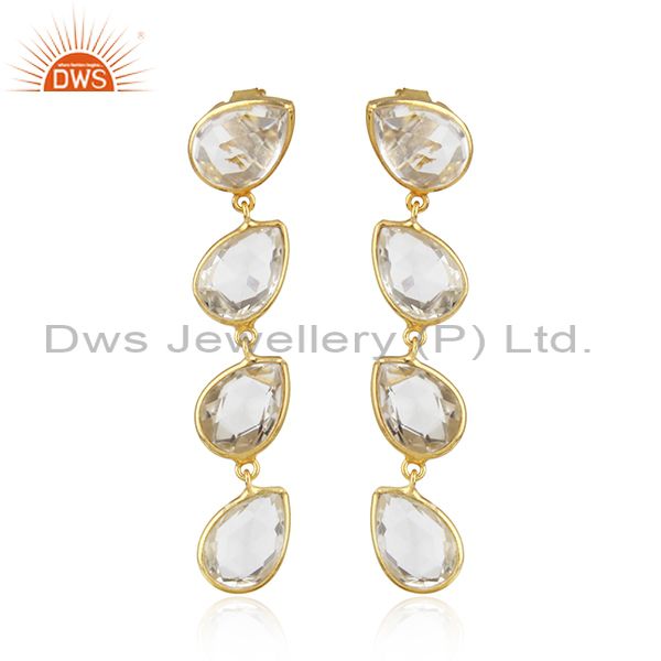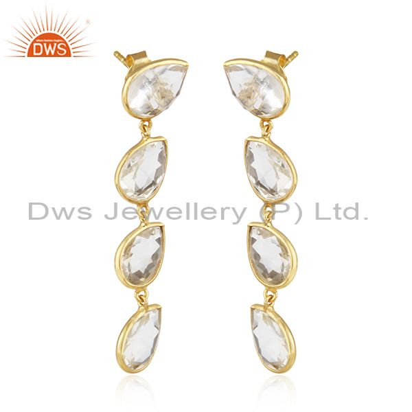 Gold Plated 92.5 Silver Crystal Quartz Gemstone Dangle Earring Jewelry