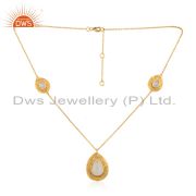 Gold Plated 925 Silver Dangle Design Rainbow Moonstone Earrings