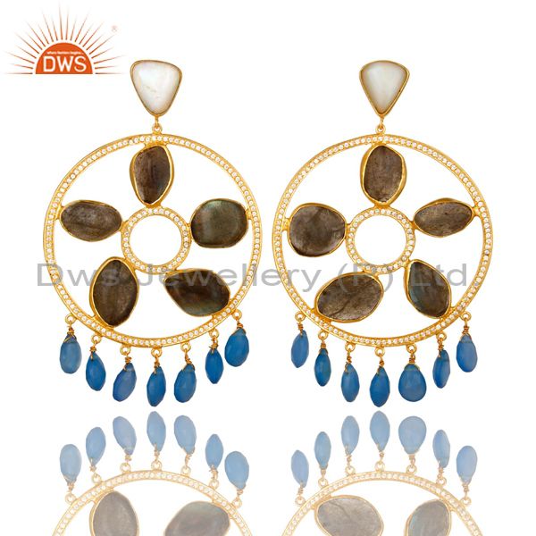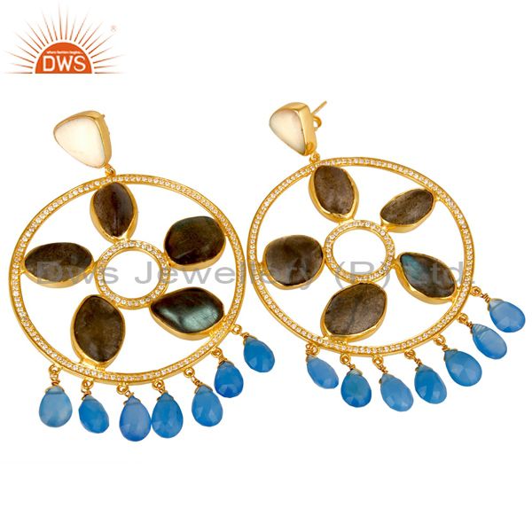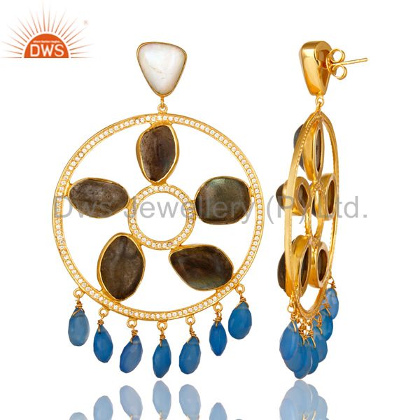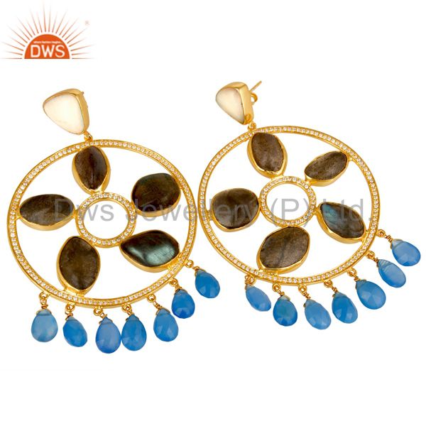 Gold Plated 925 Silver Labradorite And Chalcedony Chandelier Earrings