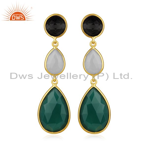 Gold Plated 925 Silver Multi Gemstone Earring Manufacturer Of Custom Jewelry