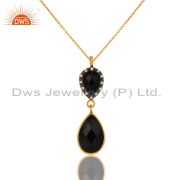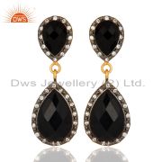 Gold Plated 925 Sterling Silver Faceted Black Onyx Gemstone Drop Earring With Cz