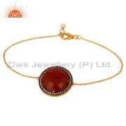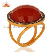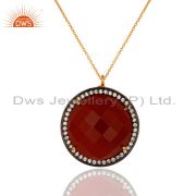 Gold Plated 925 Sterling Silver Red Onyx Faceted Gemstone Prong Earring With Cz