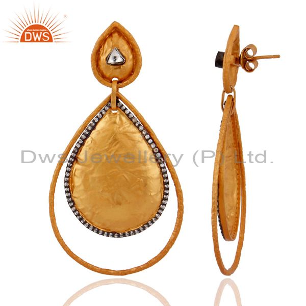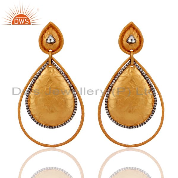 Gold Plated Brass Cubic Zirconia Womens Fashion Teardrop Earrings