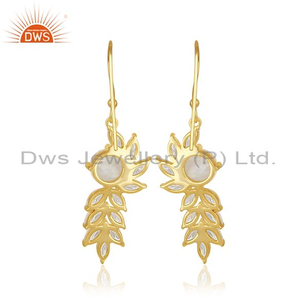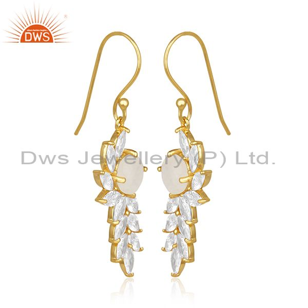 Gold Plated Brass Designer CZ and Moonstone Earring Fashion Jewelry Manufacturer