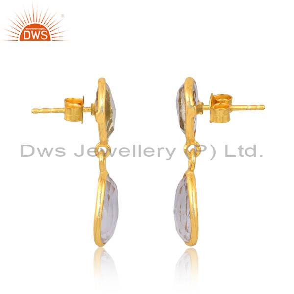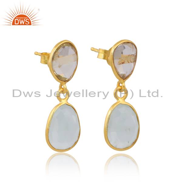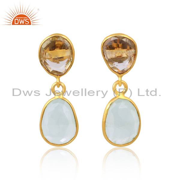Gold Plated Green Amethyst & Lemon Topaz Earrings