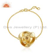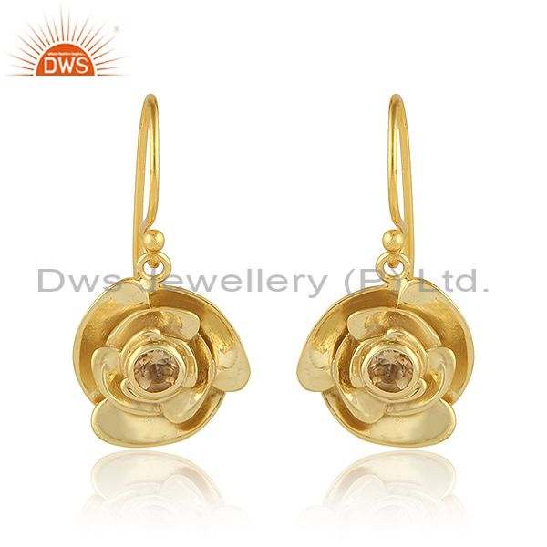Gold Plated Rose Flower Design Silver Citrine Gemstone Earrings