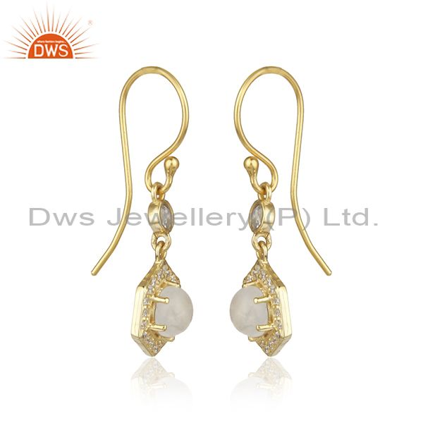 Gold Plated Silver Rainbow Moonstone Cz Gemstone Earrings For Womens