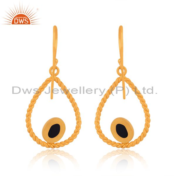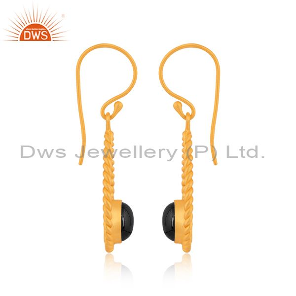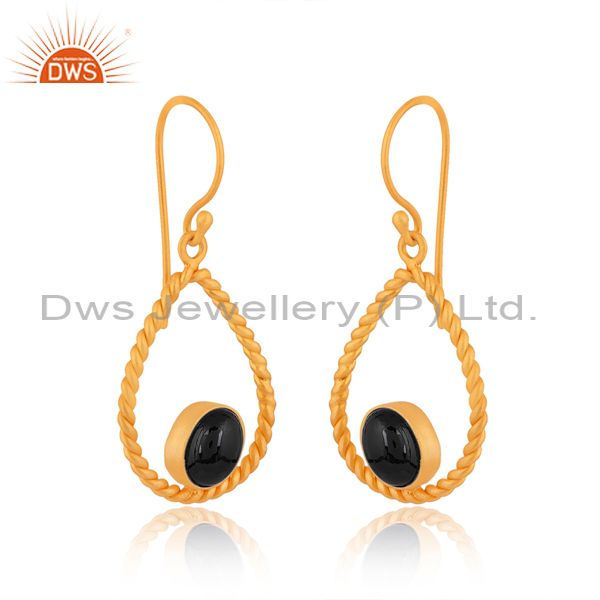 Gold Plated Silver Twisted Rope Design Black Onyx Earrings