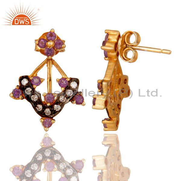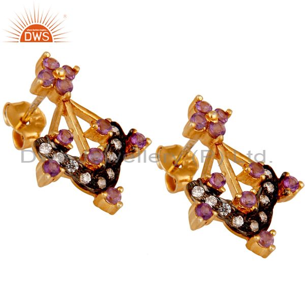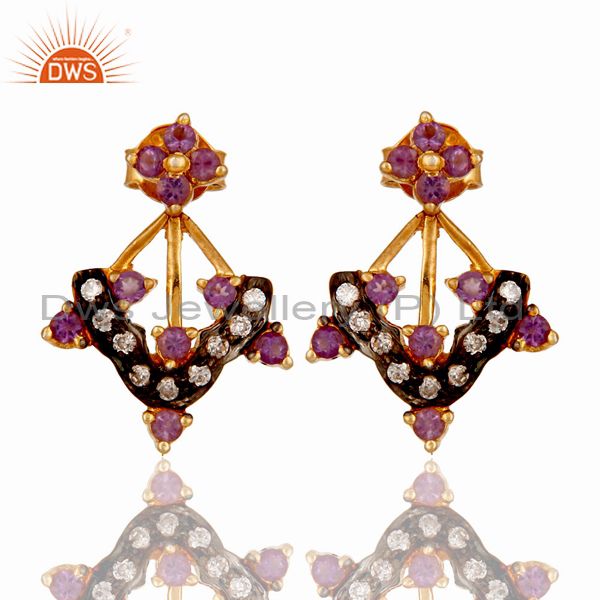 Gold Plated Sterling Silver Citrine Amethyst Garnet Gemstone Earring With Zircon