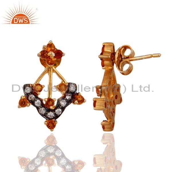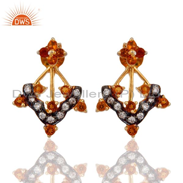 Gold Plated Sterling Silver Citrine Semi Precious Gemstone Earrings With Zircon