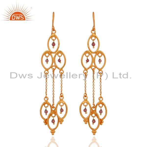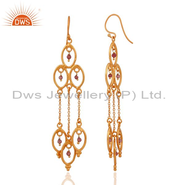 Gold Plated Sterling Silver Designer Chandelier Earrings W/ Tourmaline Gemstone