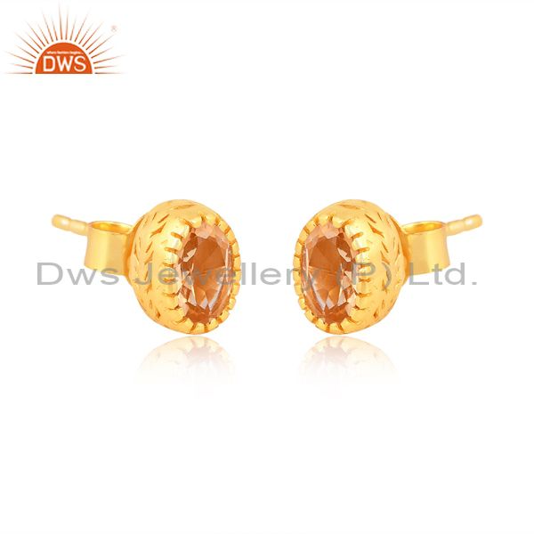 Gold-Plated Sterling Silver Earrings With Citrine On Top