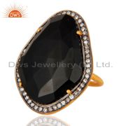 Gold Plated Sterling Silver Faceted Black Onyx Fashion Elegant Earrings With CZ