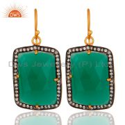 Gold Plated Sterling Silver Fancy Shape Green Onyx Prong Set Stud Earrings