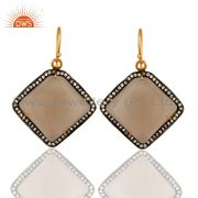 Gold Plated Sterling Silver Genuine Smokey Quartz Gemstone Ladies Stud Earrings