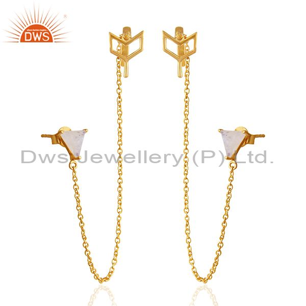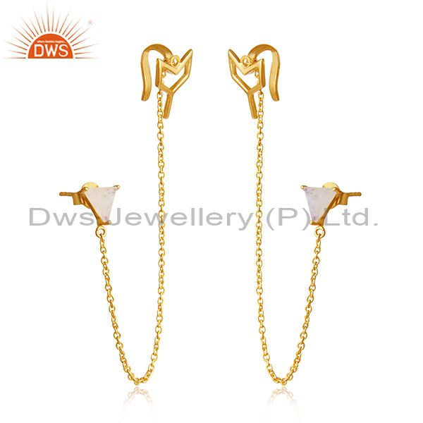 Gold Plated Sterling Silver Moonstone Ear Cuff Earrings Manufacturer From India