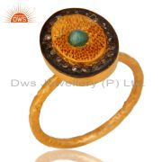 Gold Plated Sterling Silver Oval Stud Earrings With Pave Diamond Emerald Jewelry