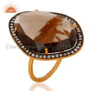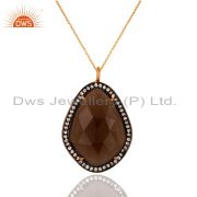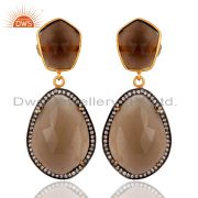 Gold Plated Sterling Silver SMoky Quartz Gemstone Stud Fashion Earrings With CZ