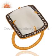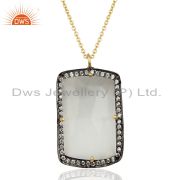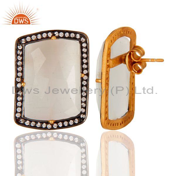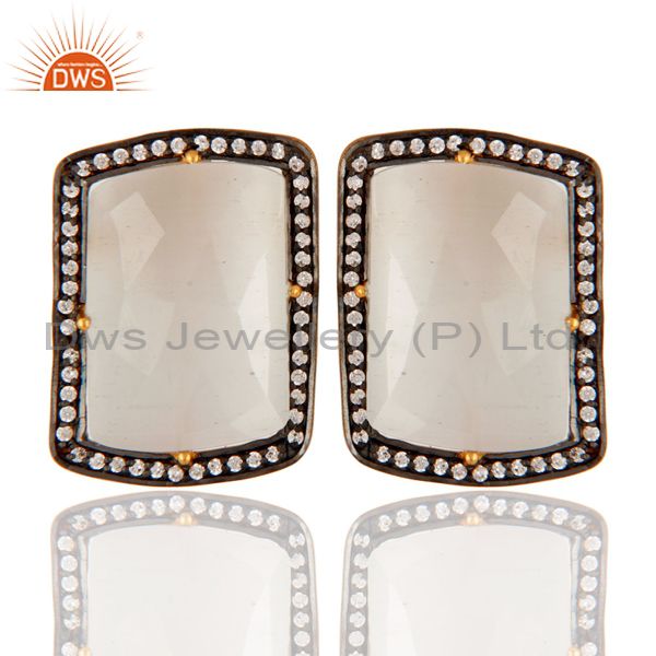 Gold Plated Sterling Silver White Moonstone & Clear Cubic Zirconia Stud Earrings