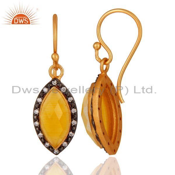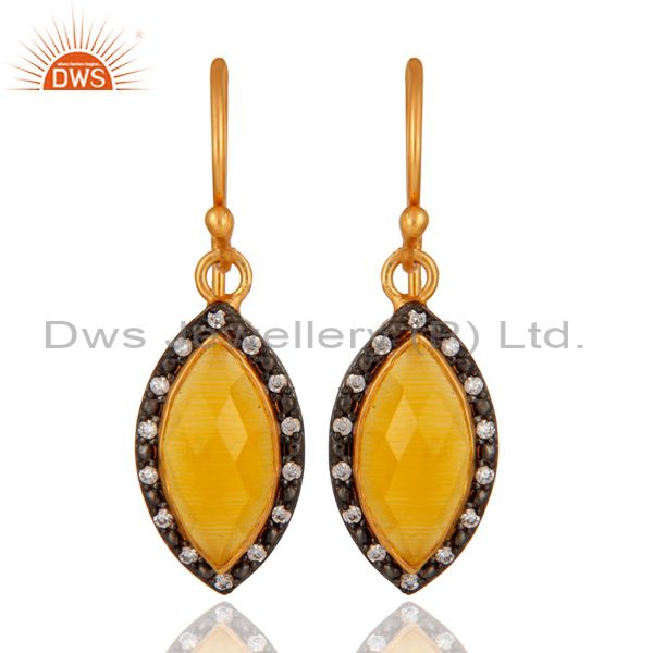 Gold Plated Sterling Silver Yellow Moonstone And Cubic Zirconia Dangle Earrings