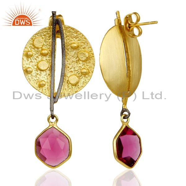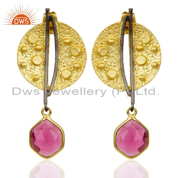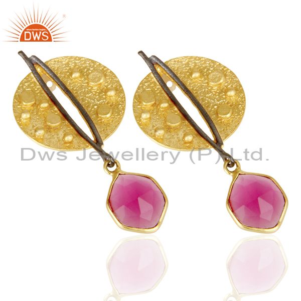 Gold Plated Texture Designer Boutique Earring Pink Fashion Jewelry