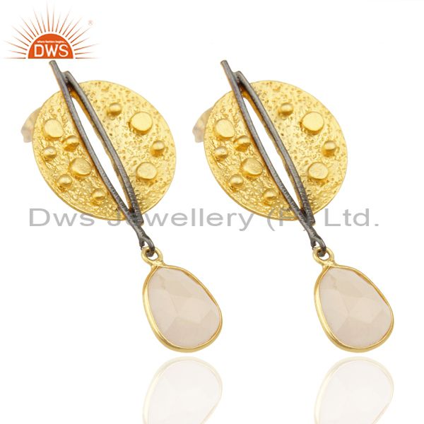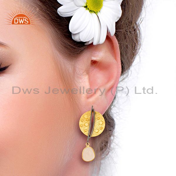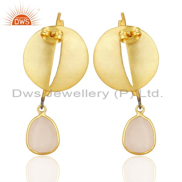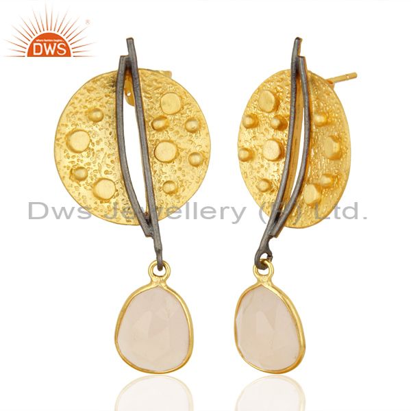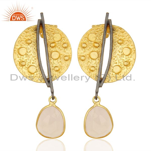 Gold Plated Texture Designer Boutique Earring Rose Chalcedony Fashion Jewelry