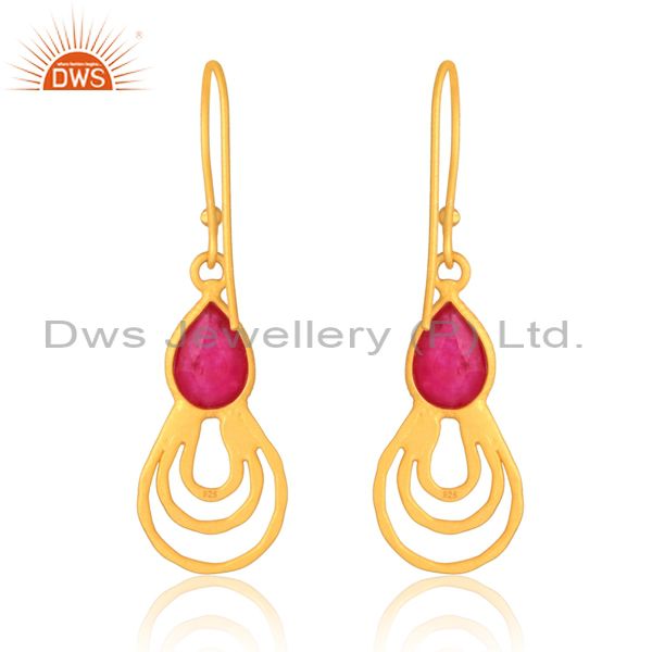 Gold-Silver Aventurine Natural Pear Stud For Valentine Day