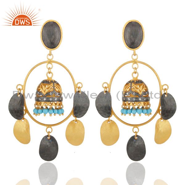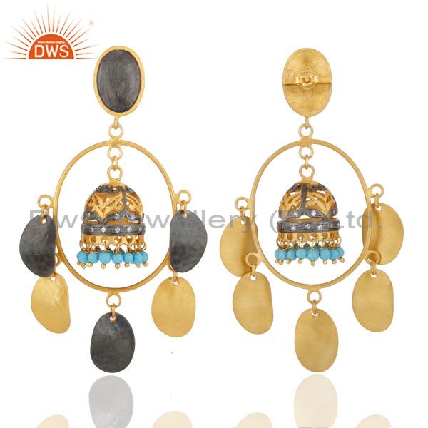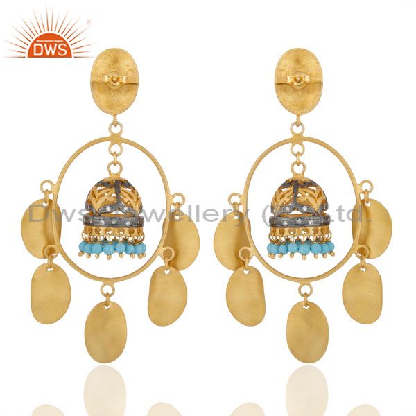 Gorgeous 22Kt Gold Plated Turquoise Belly Dance Jhumka Chandelier Earring Jewelr