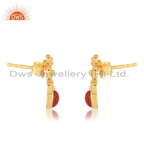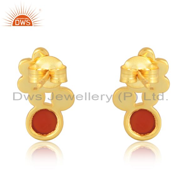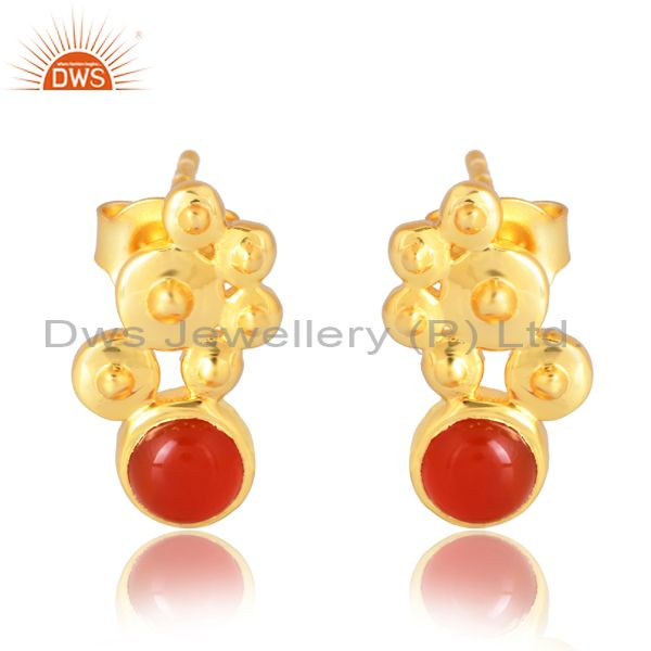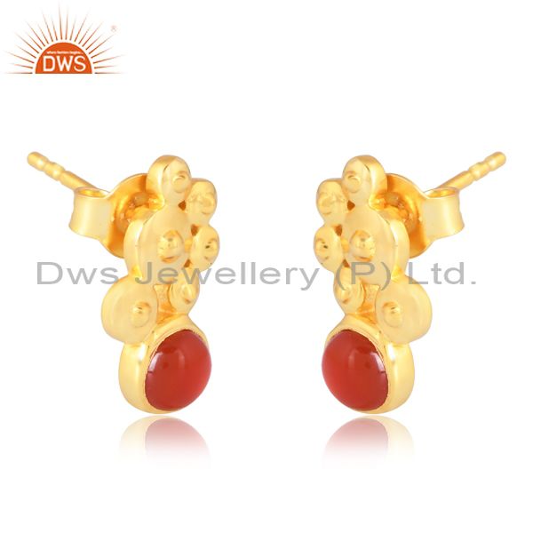 Gorgeous Circular Stud Women In Red Onyx Cabushion Round