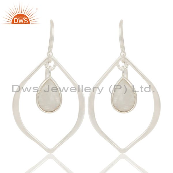 Gorgeous Solid 925 Sterling Silver Handmade Rainbow Moonstone Bezel Set Earrings