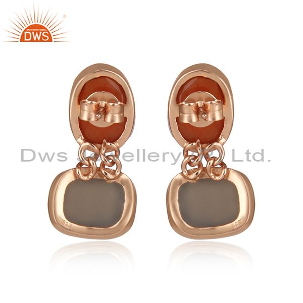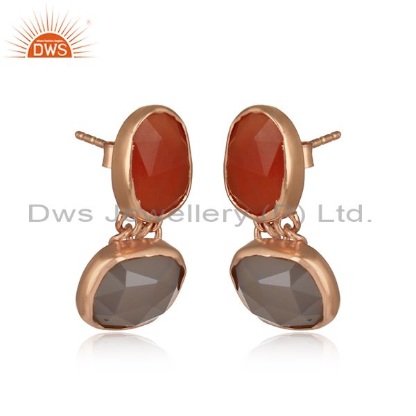 Gray And Carnelian Chalcedony Rose Gold On Silver Earring