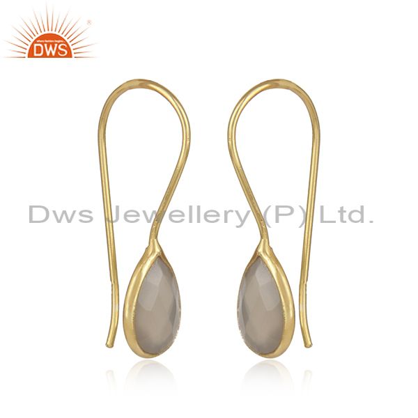 Gray Chalcedony Dangle 18K Yellow Gold Plated Sterling Silver Earrings Jewelry