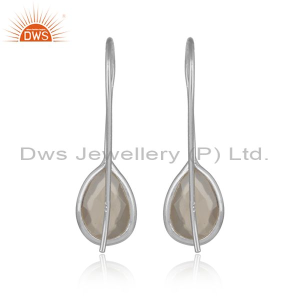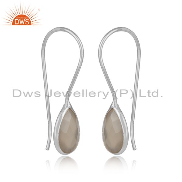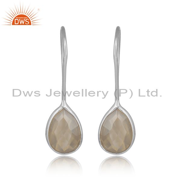 Gray Chalcedony Gemstone Newly Sterling Fine Silver Earrings