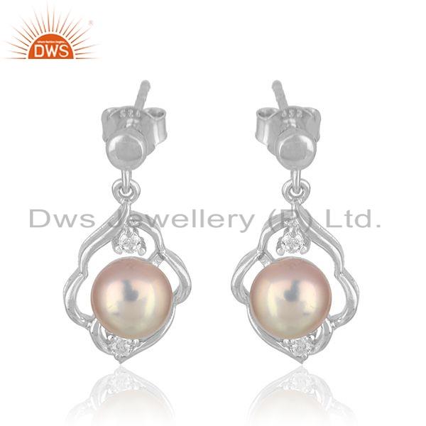 Gray Pearl Gemstone Designer White Rhodium Plated Silver Earrings